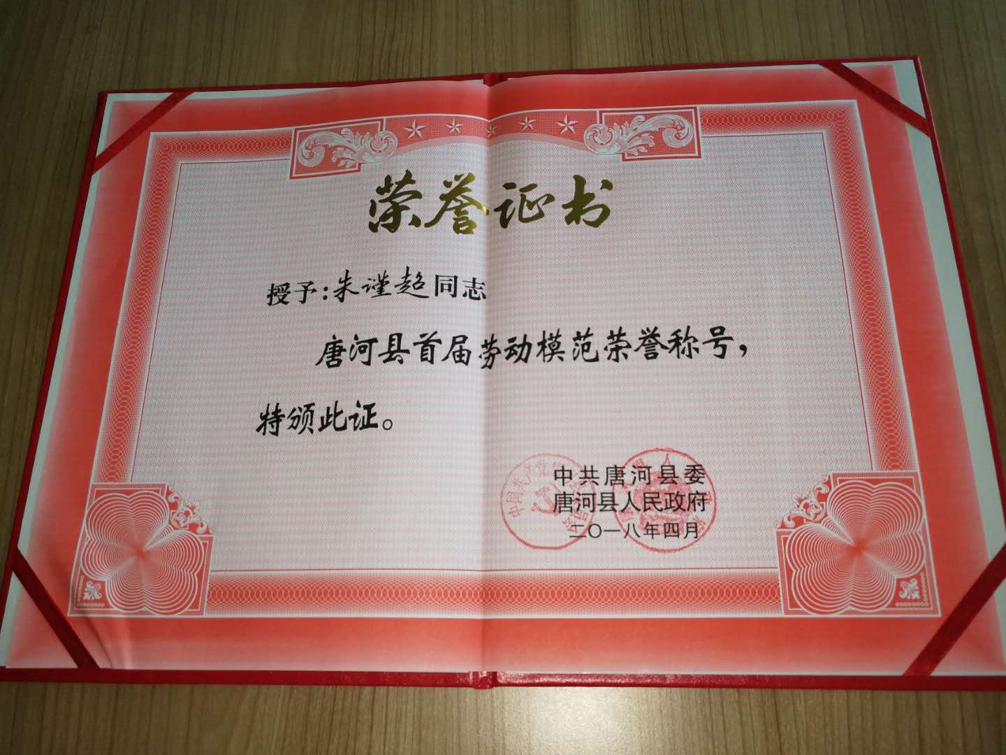 在“五·一”來臨之際,唐河縣委、唐河縣人民政府為首屆勞動模范頒發(fā)了榮譽證書及獎?wù)?。亞澳南陽公司朱謹超同志喜獲殊榮。