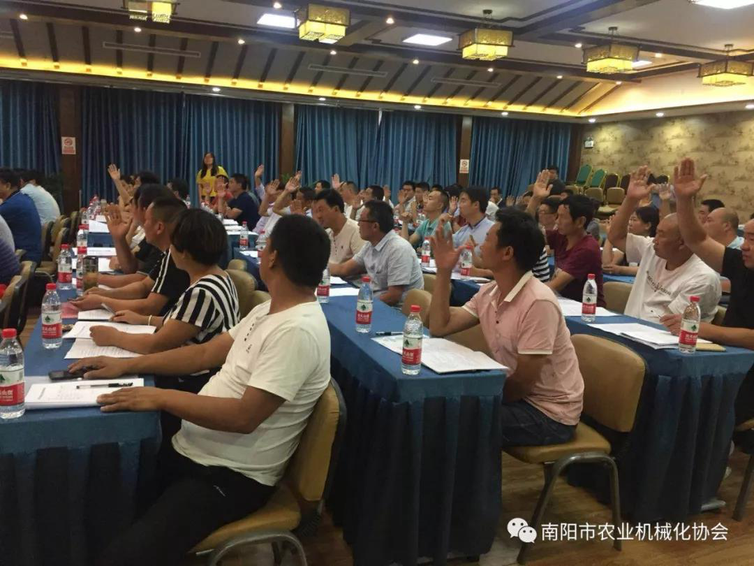 7月3日,南陽(yáng)市農(nóng)業(yè)機(jī)械化協(xié)會(huì)成立大會(huì)在南陽(yáng)市鷗凱印象酒店3樓會(huì)議室召開(kāi),南陽(yáng)市農(nóng)業(yè)機(jī)械化管理局黨組書記、局長(zhǎng)劉勤同志出席會(huì)議并做重要講話。選舉通過(guò)田云鎖(原南陽(yáng)市農(nóng)業(yè)機(jī)械公司總經(jīng)理)同志當(dāng)選為會(huì)長(zhǎng),亞澳南陽(yáng)農(nóng)機(jī)有限責(zé)任公司總經(jīng)理史炳哲、南陽(yáng)奇豐機(jī)械有限責(zé)任公司董事長(zhǎng)趙順奇、鎮(zhèn)平縣糧豐農(nóng)機(jī)農(nóng)民專業(yè)合作社理事長(zhǎng)薛云濤當(dāng)選為副會(huì)長(zhǎng)。