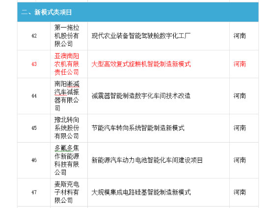 近日,亞澳農(nóng)機(jī)被國(guó)家工信部評(píng)為2017年智能制造綜合標(biāo)準(zhǔn)化與新模式應(yīng)用示范企業(yè)。據(jù)了解,這次全國(guó)智能制造綜合標(biāo)準(zhǔn)化專(zhuān)項(xiàng)項(xiàng)目批準(zhǔn)企業(yè)43 家,河南省內(nèi)2家,為機(jī)械工業(yè)第六設(shè)計(jì)研究院,洛陽(yáng)軸研科技股份有限公司國(guó)有大型企業(yè);新模式應(yīng)用立項(xiàng)51家,河南省僅批準(zhǔn)6家,亞澳智能化制造新模式成為業(yè)界首家,并獲得國(guó)家專(zhuān)項(xiàng)資金補(bǔ)貼。
