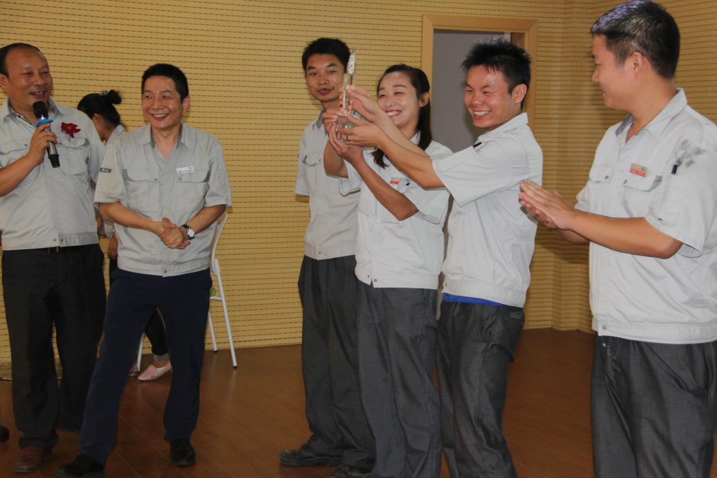 慶典的文藝節(jié)目也十分精彩,各班組盡顯神通,各班組都帶來了精心準(zhǔn)備的節(jié)目,歌曲、相聲、小品、脫口秀。一個比一個精彩,表演者的一顰一笑都獲得觀眾的熱烈掌聲,臺上臺下齊互動,現(xiàn)場氣氛一次次地推向了高潮。