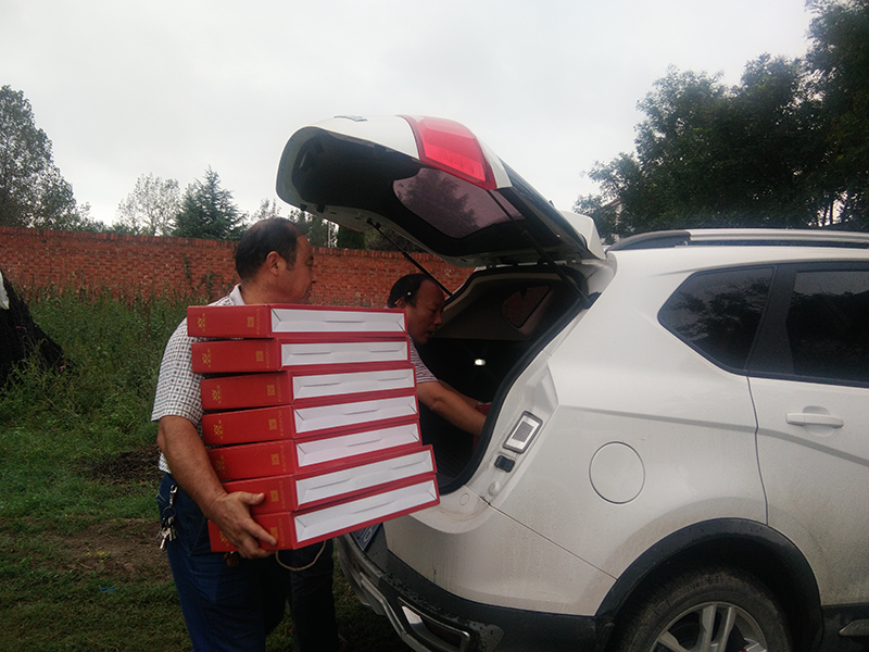 淫雨霏霏,在國(guó)慶、中秋雙節(jié)來(lái)臨之前,2017年9月25日下午,亞澳南陽(yáng)農(nóng)機(jī)有限公司總經(jīng)理助理郭靖懷著滿(mǎn)滿(mǎn)的熱情與關(guān)懷,帶著月餅禮盒,再次來(lái)到大河屯鎮(zhèn)申沖村開(kāi)展扶貧慰問(wèn)工作。
